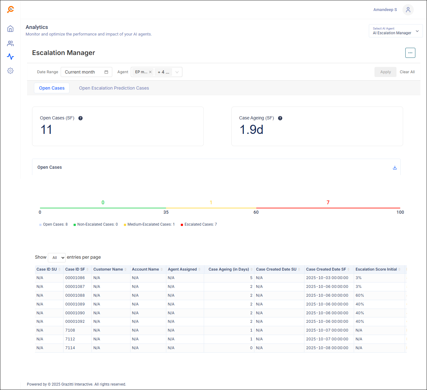 This article walks you through the AI Escalation Manager analytics report that is useful to monitor your open case load, understand escalation risk, and drill into individual cases.
