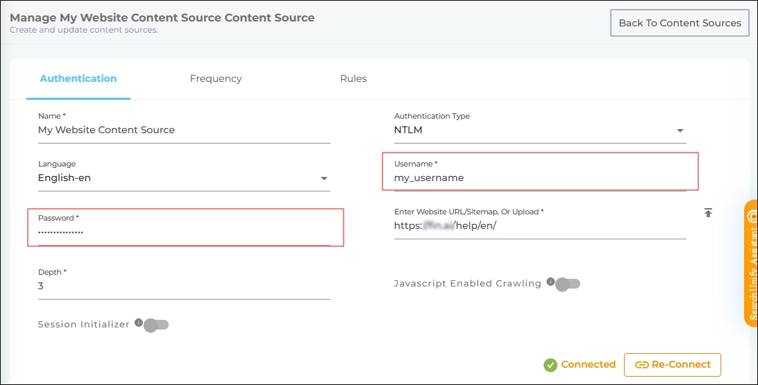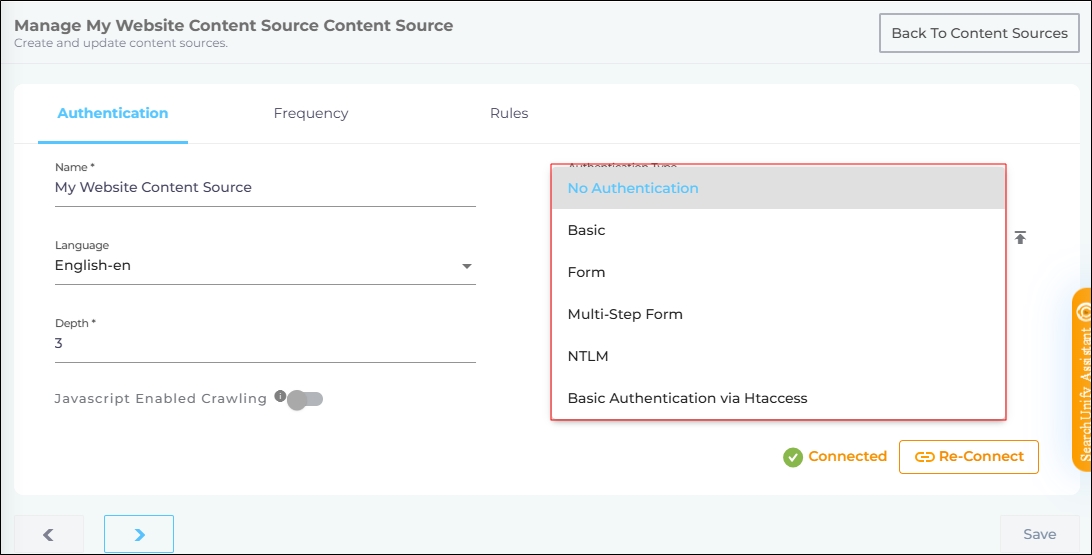 Once you have authenticated the content source, return to Use a Website as a Content Source.