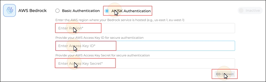 SearchUnify admins now have more LLMs to choose from. AWS Bedrock has been added to the Bring Your Own LLM section in LLM Integrations. To use it, integrate AWS Bedrock as a new LLM option in Search Clients > Edit > Configurations. The integration supports secure connection setup through two authentication methods: