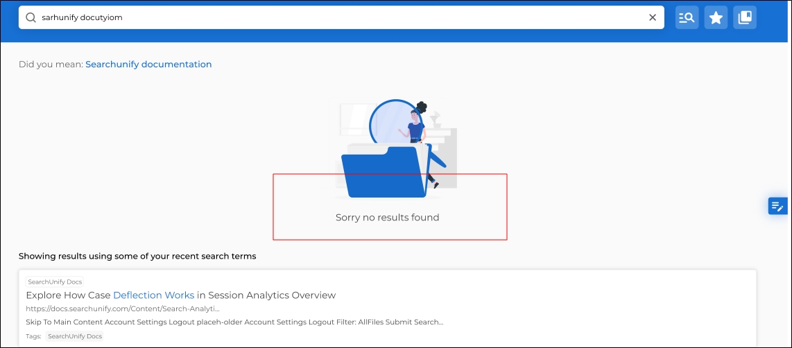 Fig. A snapshot of the error when no relevant results are found in the content source for the user query.