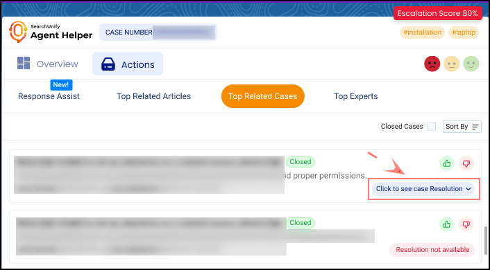 View Case Resolution in Top Related Cases