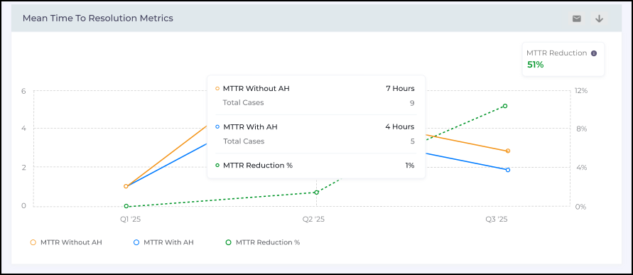 This release introduces a new Mean Time to Resolution (MTTR) Metrics report that compares resolution times, with and without Agent Helper (AH) usage, for cases. This metric enables the leaders to quantify time savings. The metric also helps identify where AH accelerates resolutions and how its usage trends over time influence operational efficiency.