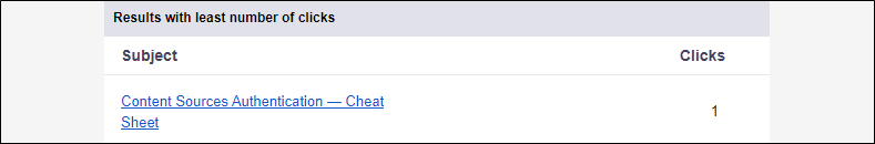 4. Results with the Least Number of Clicks. These documents are probably old or don't have catching titles and descriptions so that despite appearing on the search results page they don't get clicks. Rewriting or search tuning can help you increase click volume for these results; in case you perceive these results important.