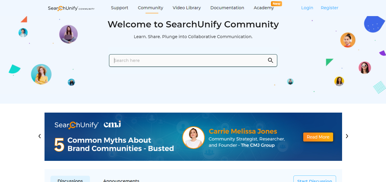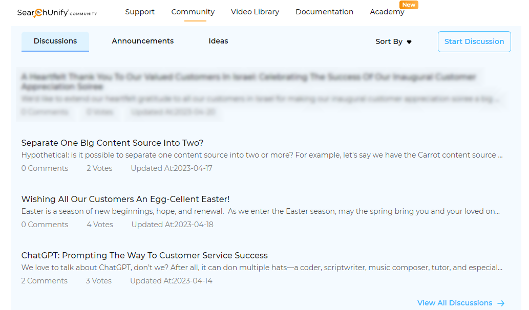 Self-help docs, community discussions, and expert assistance are available to help you troubleshoot issues and find new ways to get the most out of SearchUnify.