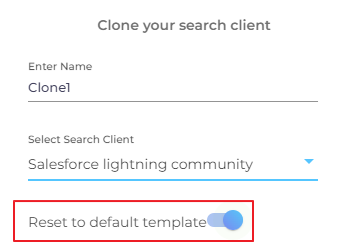 Toggle on Reset to Default Template to obtain a vanilla search client. However, if you want your custom search templates to be cloned as well, then don't turn it on. The configuration is turned off by default.