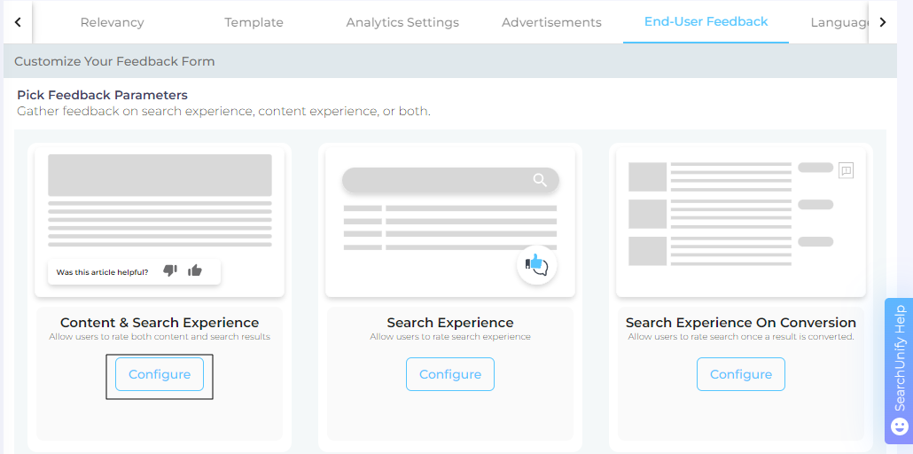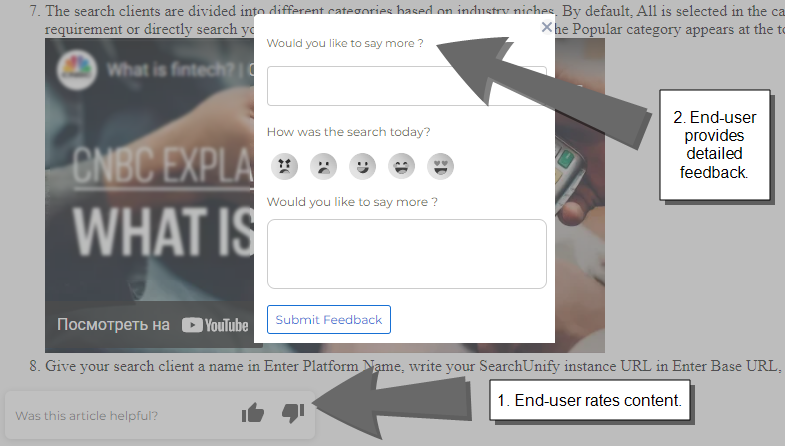 Text Feedback allows end-users to do more than just rate their experience with a simple click. It allows them to write detailed responses which are shared with all the admins of a SearchUnify instance. The feature is disabled by default.