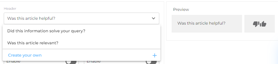 Header is the request for feedback that end-users see. You can select a header from templates or write a new one using Create Your Own.