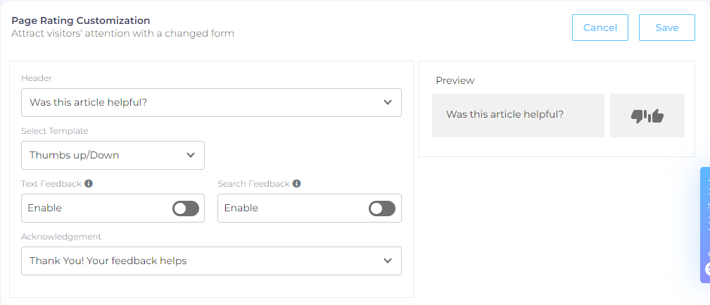 Text Feedback allows end-users to do more than just rate their experience with a simple click. It allows them to write detailed responses. The feature is disabled by default.