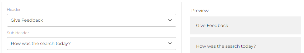 Header and Sub Header are prompts which ask end-users to rate their search experience. You can implement a Header and Sub Header from templates or write your own using the Create Your Own function.