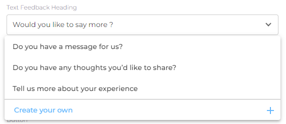 Text Feedback Heading is a prompt urging end-users to write a detailed feedback response. You can select the prompt from templates or write a new one using Create Your Own.