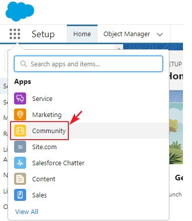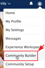 From the community home page, navigate to Profile (top right) and click Community Builder.
