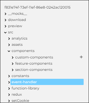 Custom-components: Lists the custom components currently in your search client. If no folders exist, you can create new custom .jsx components for your search page. We, however, discourage using this for new components as you can directly edit all the files related to the search client.
