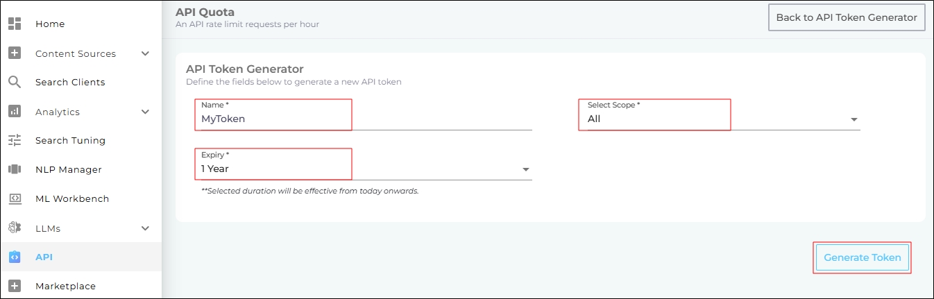 Navigate to API > API Token Generator. Click Generate New API Generator.
