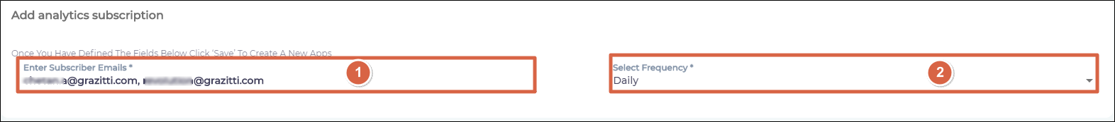 - List all the subscriber emails (separated by commas) and select an email frequency. If you select Daily, then you will receive an email everyday. To receive notifications less frequently, select either Weekly or Monthly.