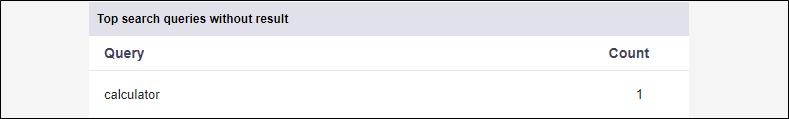 - Top Search Queries without Result. Useful for content managers who can prioritize writing based on this report. If customers search for a product 100 times during Data Period and find no result, then it's time to document the product.