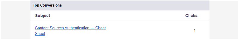- Top Conversions. The most popular documents as measured by clicks. The report can serve as a list of high-priority documents which should always be up-to-date because users consult them often.
