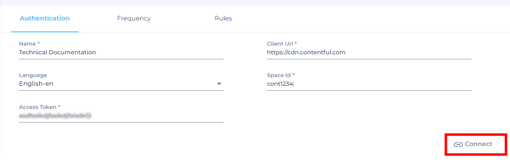 Access Token. Enter the Content Delivery API access token corresponding to the space ID.