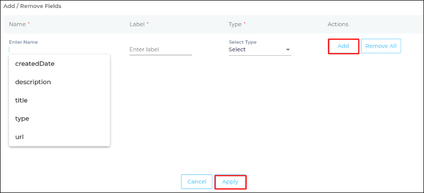 to specify the fields in a Content model that should be indexed. A new screen appears where you can configure the fields. Once you are done, click Apply.