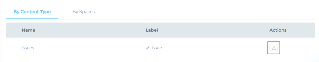 Click Edit in the Action column to view the pre-configured properties for a content type.