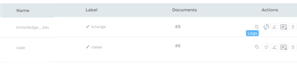 Once the object has been crawled, the total number of documents indexed from that particular object is displayed in the Documents column.