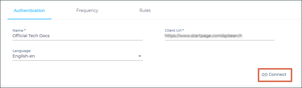 When the Connect button is displayed if the Content Source authentication is successful. Along with the button, a message is displayed There are no crawl errors and the Content Source authentication is valid.