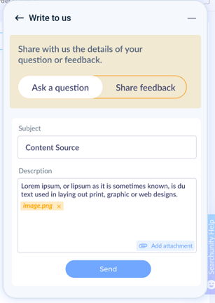 Write to Us allows SU Admins to share feedback and ask questions. Click it and choose between Ask a Question or Share Feedback.