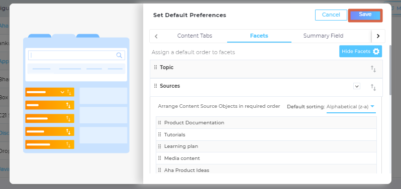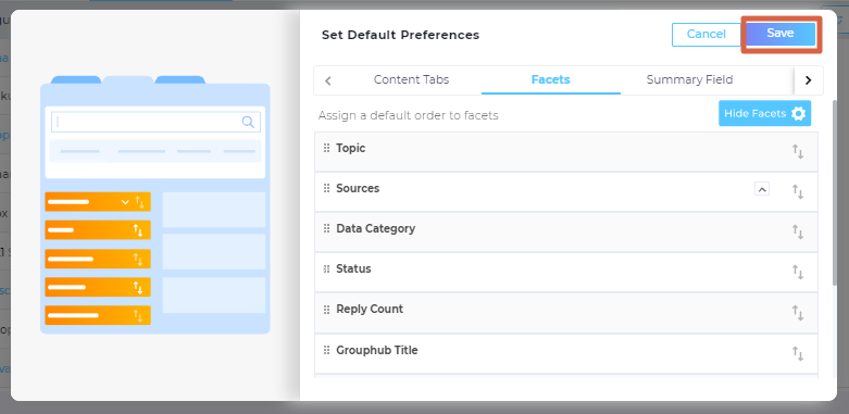 - Save the settings again. Once you click Save, the new facet order immediately reflects on the search client.