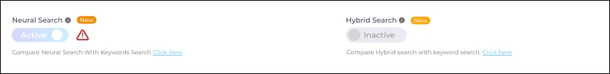 Neural Search can be activated and deactivated with the movement of a toggle. This document covers what happens when you turned it on or turn it off.