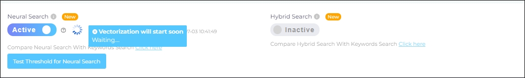 Hybrid Search. All subscribers who opt for Hybrid Search don't get Neural Search. In this plan vectorization takes place at a fixed schedule.