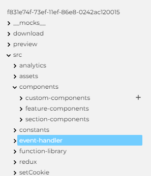 Custom-components: Lists the custom components currently in your search client. If no folders exist, you can create new custom .jsx components for your search page. We, however, discourage using this for new components as you can directly edit all the files related to the search client.