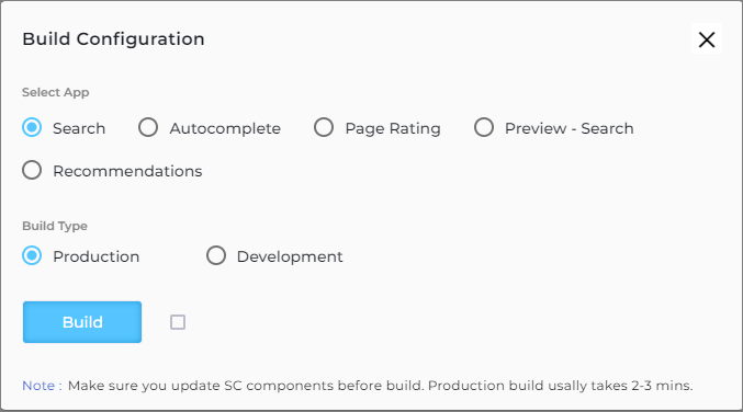 Lastly, when you have done the required customizations to the component files, use Build to to push the changes on the search client.