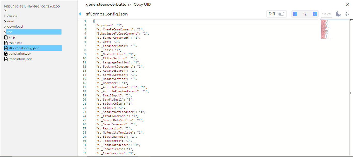Toggling it on splits the view in two windows; 1) Custom UID File and 2) Standard Codebase File.