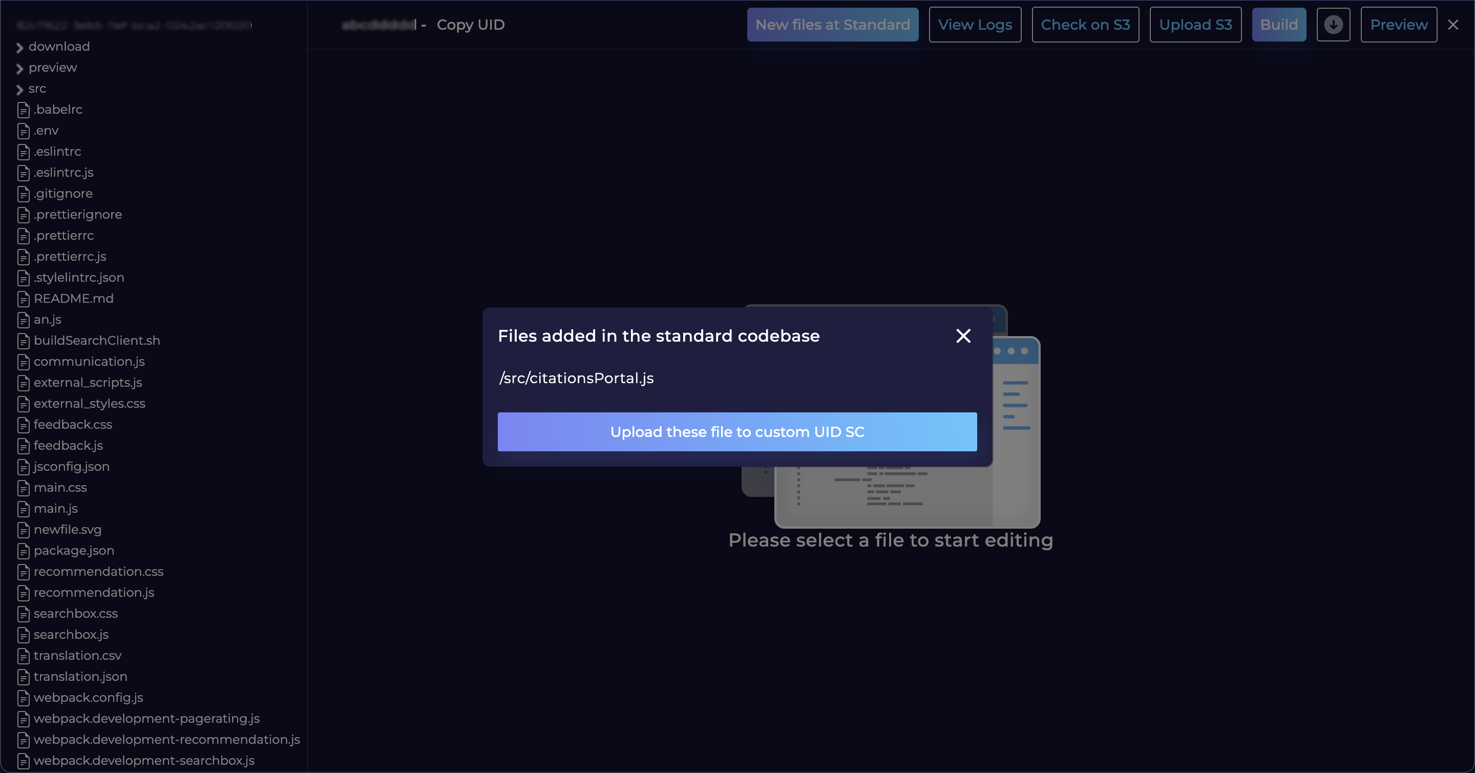 If you come across an instance where your S3 build files are inconsistent with the S3 files, use Upload S3 to update the files on S3 bucket.
