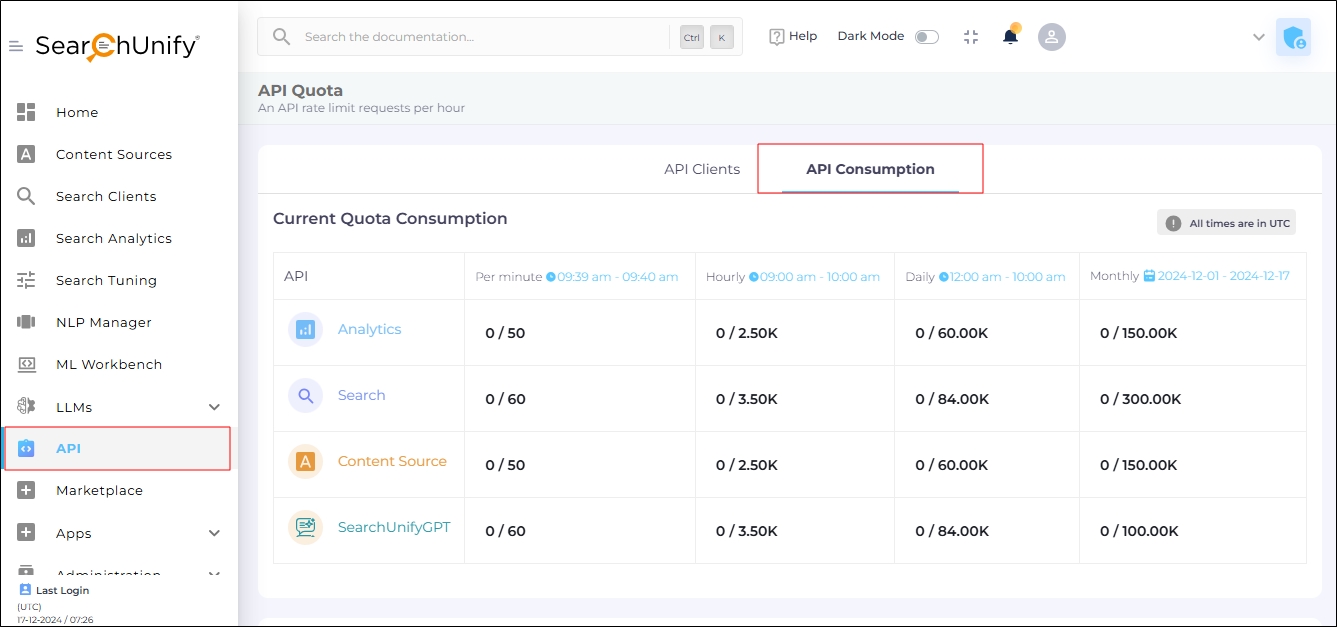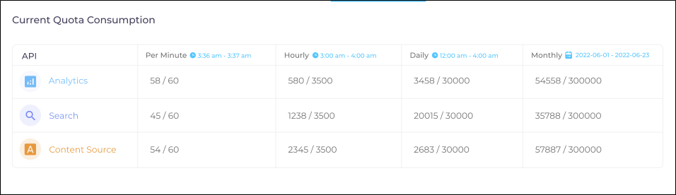 Fig. A snapshot of API Consumption in the SearchUnify Admin Panel.