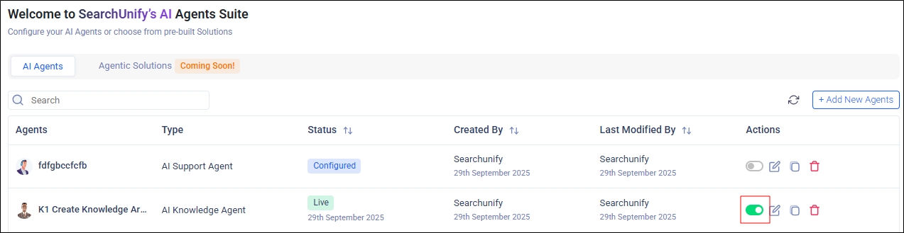 Agents work only after they have been activated. Return to the AI Agents screen, and activate your agent.
