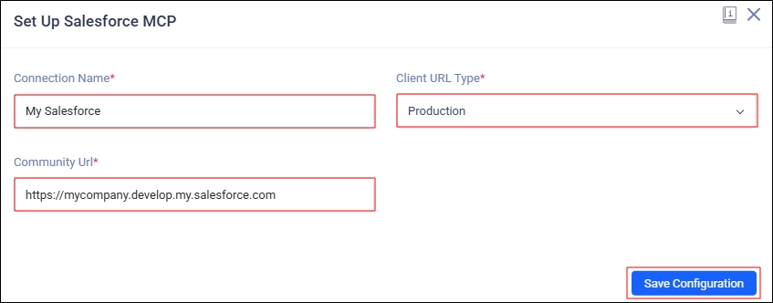 Click Save Configuration. A pop-up will display. Authenticate your org.