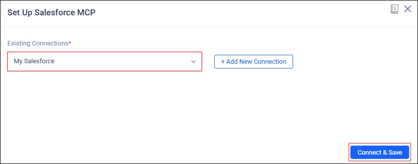 Select a saved Salesforce connection from the Existing Connections list and click Connect & Save.