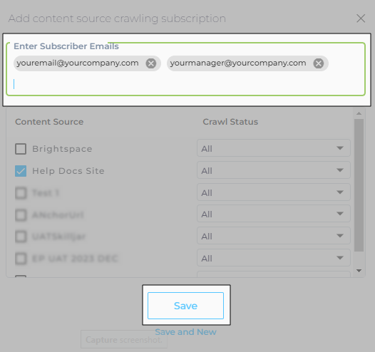 - Write the emails of the people who will receive notifications in Enter Subscriber Emails. Click Save.