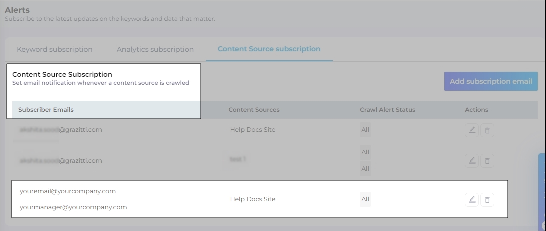 Content Source Subscription allows admins to receive email notifications in three scenarios: