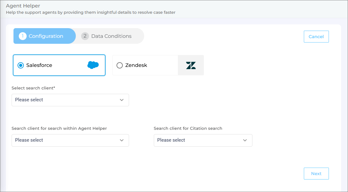 Select Salesforce. This is where the Agent Helper app will be configured for Salesforce Service Console.