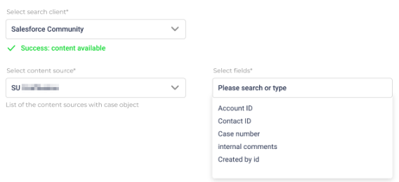 Choose your Salesforce content source from the drop-down and select the required fields.