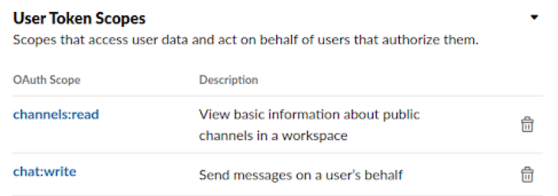 Scroll down to Scope and add these scopes channels:read and chat:write to User Token Scopes.