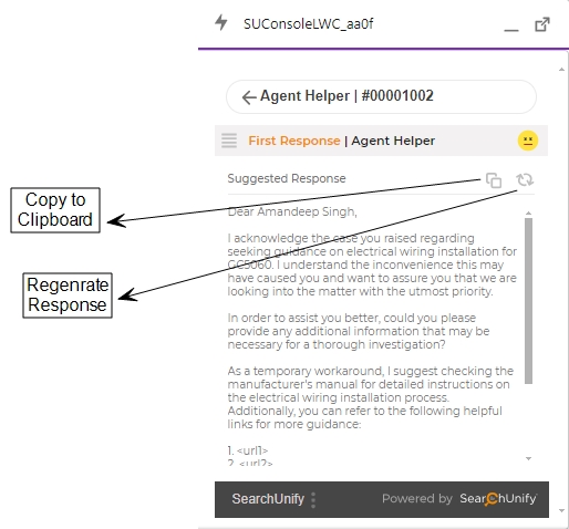 For SearchUnify v24.Q1 and newer versions, the app will create a first response draft based on the case title, description, comments, etc. The draft will also contain the links of possible help articles that can be useful for the customers.
