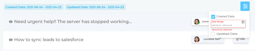 and apply Create Date and Update Date. The applied filters are placed on top of the articles' list.
