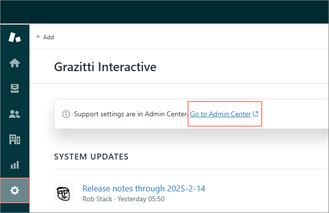 Log into your Zendesk instance, navigate to the Settings, and select Go to Admin Center.
