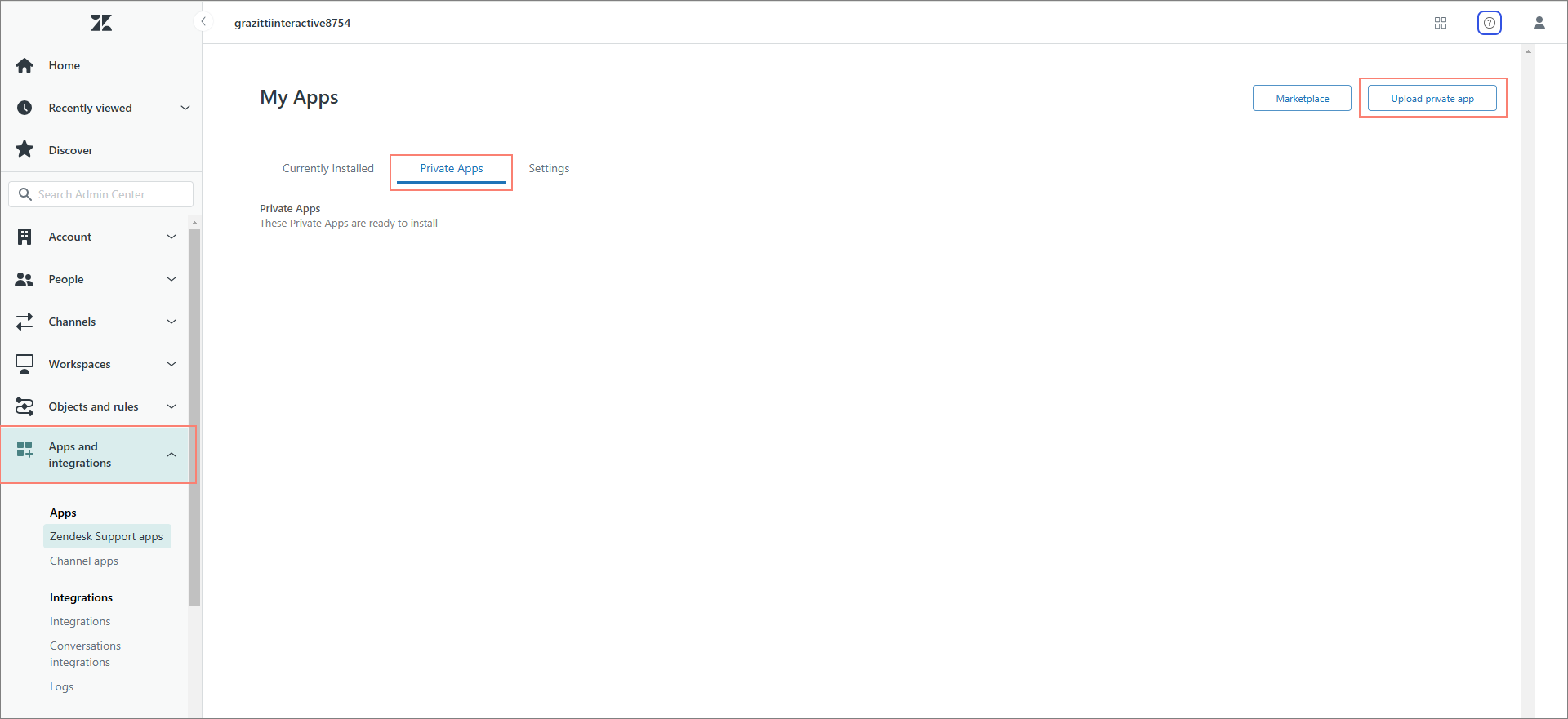 Navigate to Apps and Integrations > Private Apps and click Upload private app.