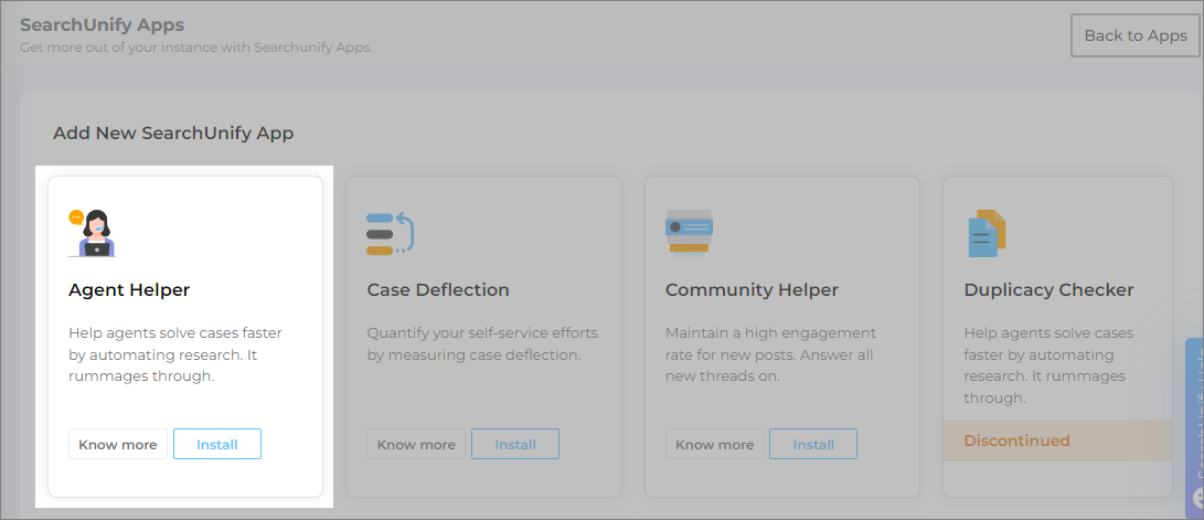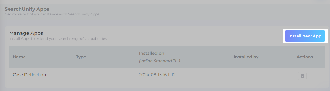 If you have any of the SearchUnify apps installed, you will see a list of installed apps. Select Install new App.