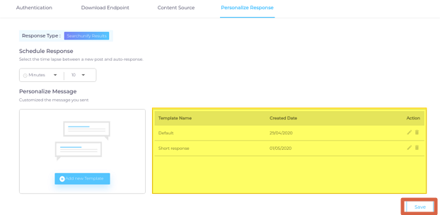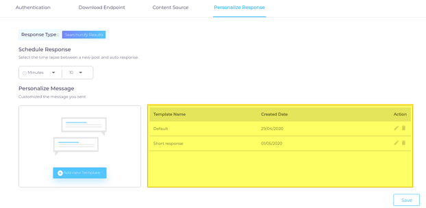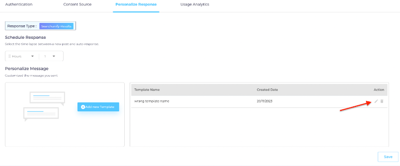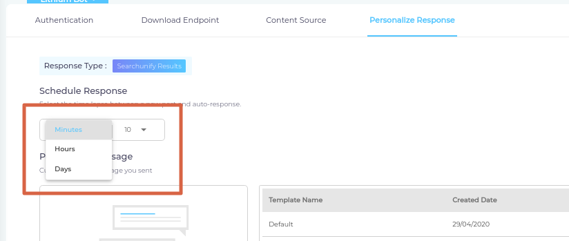 The first step in drafting a template is to decide when the bot should spring into action and publish a response. It can be decided on the Personalized Response screen in the Schedule Response section.