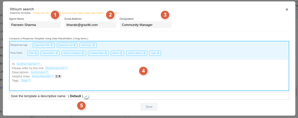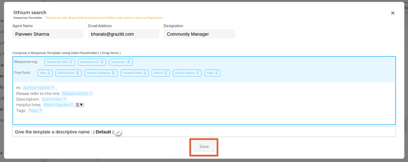 Response Tag. The response tags are the properties of the top results the responder will find. In the image, you can see three properties: Response Title (a placeholder for the title of the first search result), Response URL(a placeholder for the web address of the first search result), and Summary (a placeholder the meta description of the first search result). Drag them to their place in your template. Check out "Why Should I Choose a Search Engine?" to learn what a responder is.