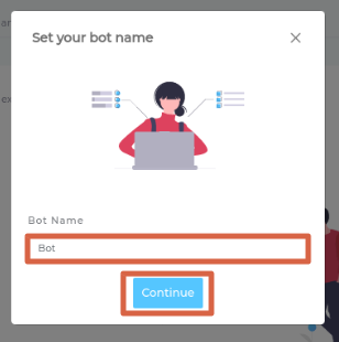 - Each bot has a label to help admins distinguish one from another. Give yours a label and click Continue.